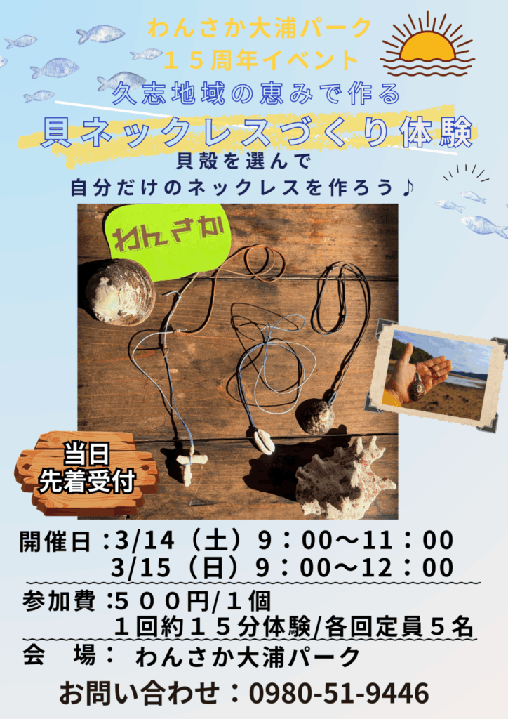 わんさか15周年企画!貝ネックレスづくり体験